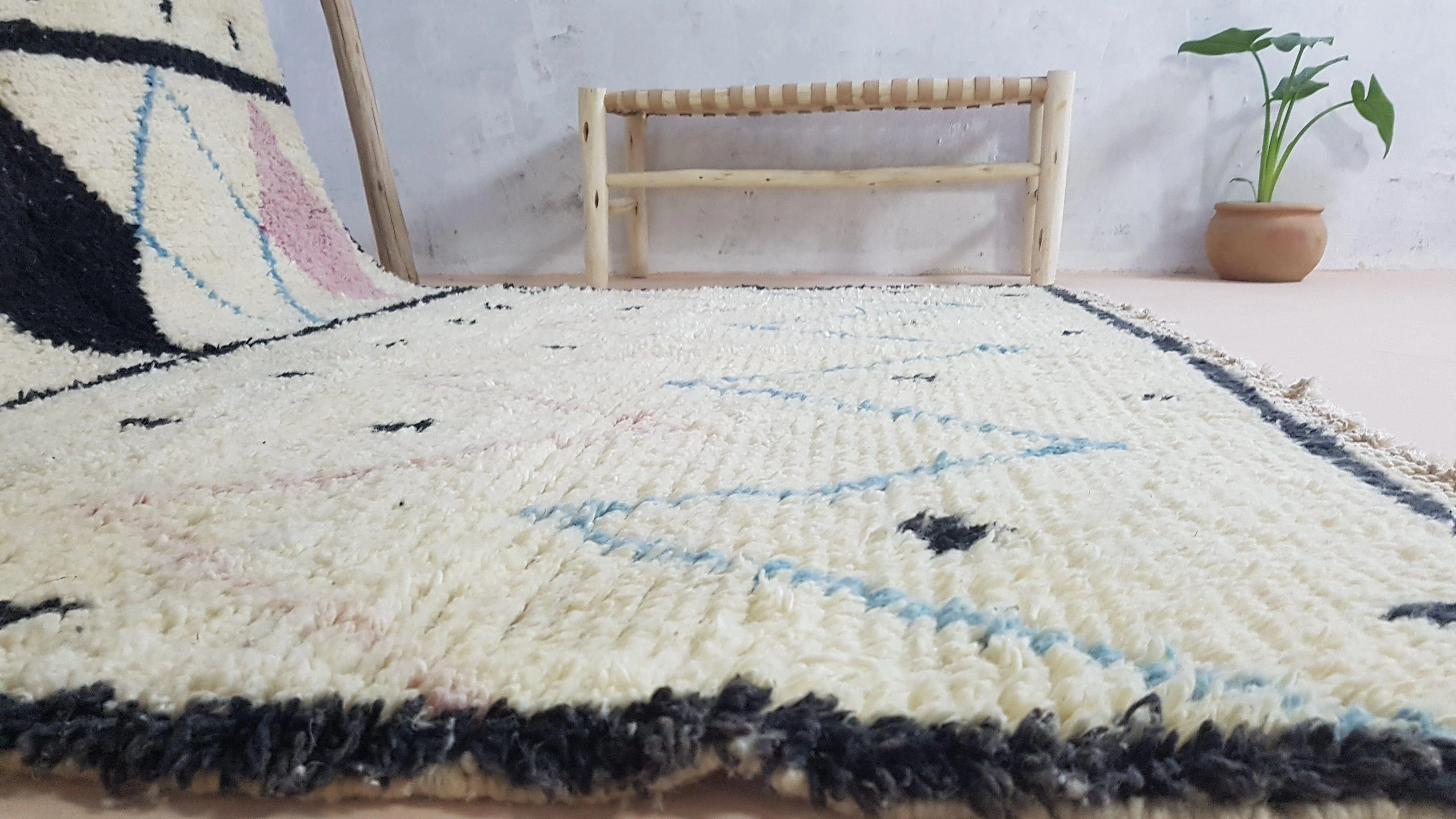 Authentic Moroccan Berber rug from Azilal region. This rug is hand woven by women weavers of our own family cooperative in the atlas mountains of Morocco. It comes from incredibly soft and organic sheep wool. The colours of the wool are made from natural pigments.