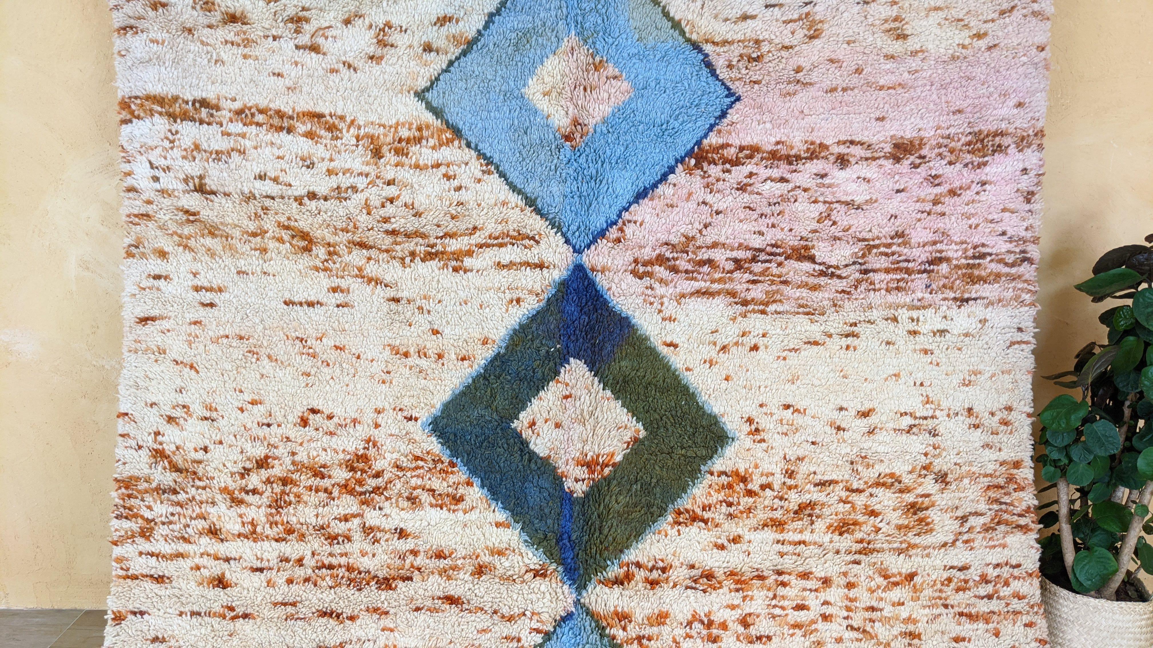 Authentic Moroccan Berber rug from Azilal region. This rug is hand woven by women weavers of our own family cooperative in the atlas mountains of Morocco. It comes from incredibly soft and organic sheep wool. The colours of the wool are made from natural pigments.